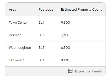 Pinpoint Your Audience: Forget random distribution! Bolton boasts diverse neighborhoods, each with its own character. Imagine saturating the trendy bars of the town center (BL1) with flyers promoting your upcoming nightlife event, or blanketing the family-friendly areas of Horwich (BL6) with information about your exciting new toy store. With detailed property counts in various Bolton areas, we can tailor a distribution plan that aligns perfectly with your target audience: